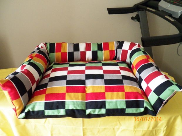 This no sew pet bed has cardboard bolsters to make it sturdier for your pup or other small pet.