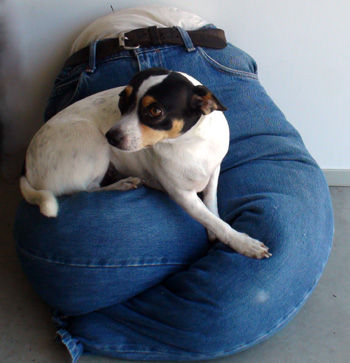Now what dog doesn’t love to cuddle up on a pair of soft blue jeans? You can make them a great pet bed with an old pair that they will really enjoy.