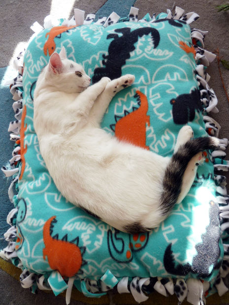 Make a comfy no sew bed for your cat or small pet in an afternoon or hour or two. This is a fun project that can be done by teens or older kids too.