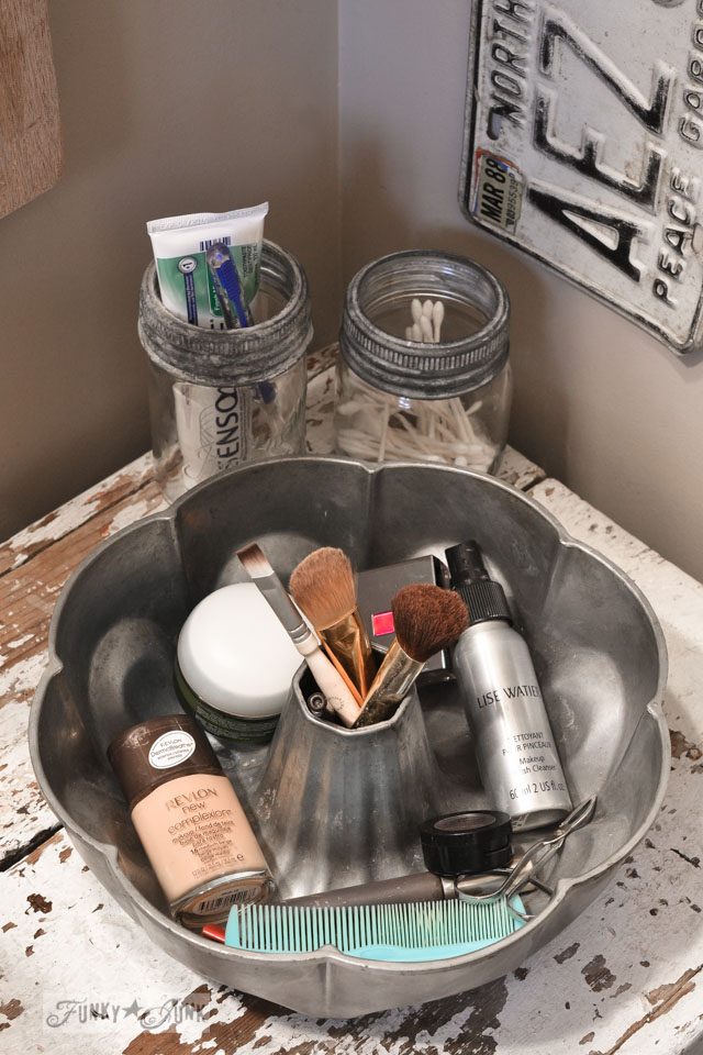 This one is so simple! All you need is an old bundt cake pan and you are also set. Of course, no one is going to stop you if you want to find something cute and vintage. You can even dress up a boring one laying around the house into something to match your décor!