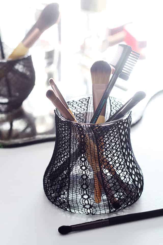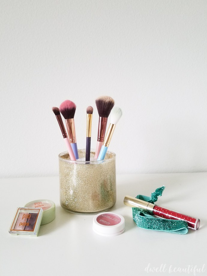 Need a makeup brush holder? Look no further than the special candle that is almost burnt out!