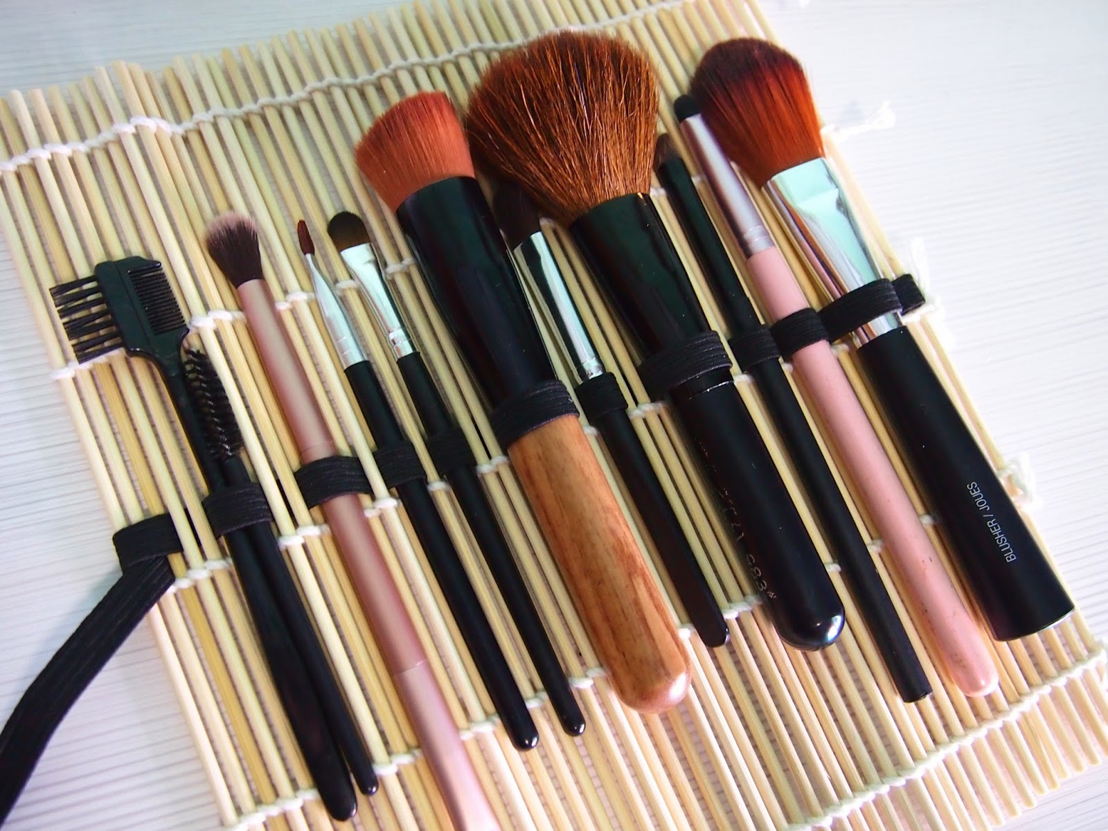Sushi mats make a super simple and cute holder for your make up brushes!