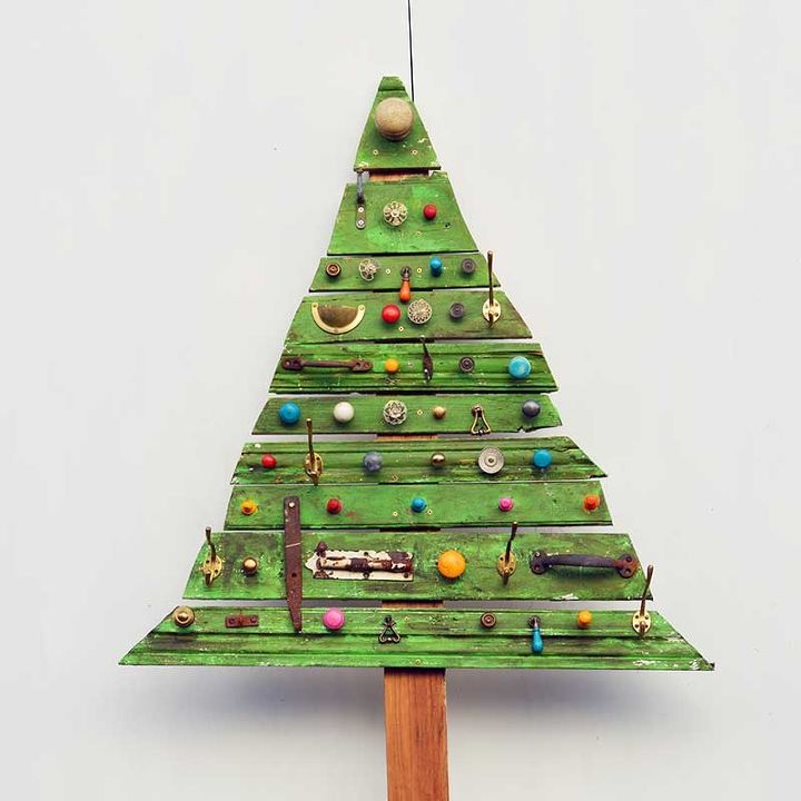 This Christmas tree made out of scrap wood is so interesting and fun! A great alternative to traditional trees!
