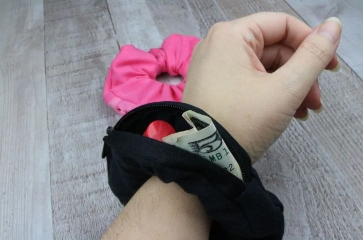 If you’re going to the gym or exercising outdoors, it helps to have a couple of contingency items on you! A couple of dollars, your gym card, car key, etc.! You can carry them securely with this scrunchie with a secret compartment!