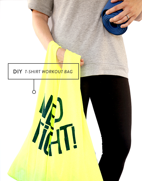 This is a super simple DIY that uses an old T-shirt to make a great work out bag!
