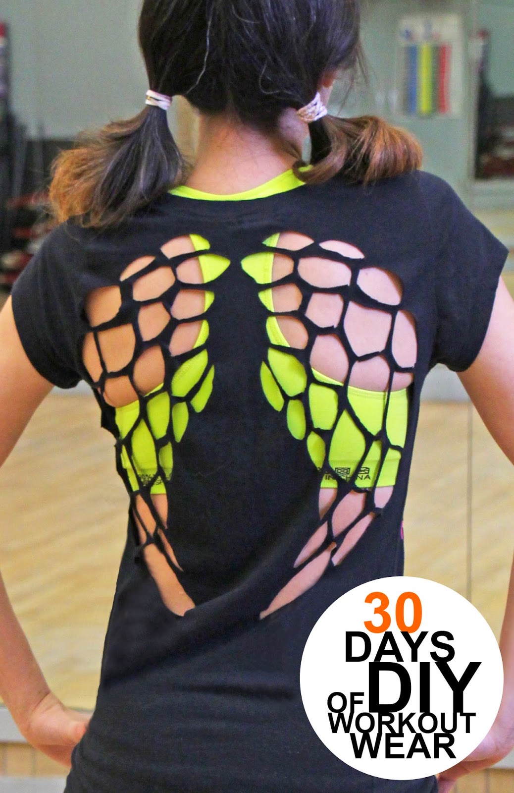 Each New Year, people around the world are inspired to do new things and keep commitments towards self improvement. One of the most popular include fitness goals! Whether you will be hitting the gym, running outside, or doing yoga in your living room, I’d wager to guess that one thing that always makes a work out better is feeling confident in what you’re wearing! But having a great looking fitness wardrobe doesn’t have to mean breaking the bank! Many of these fantastic DIYs can be done through upcycling with materials you have at home!