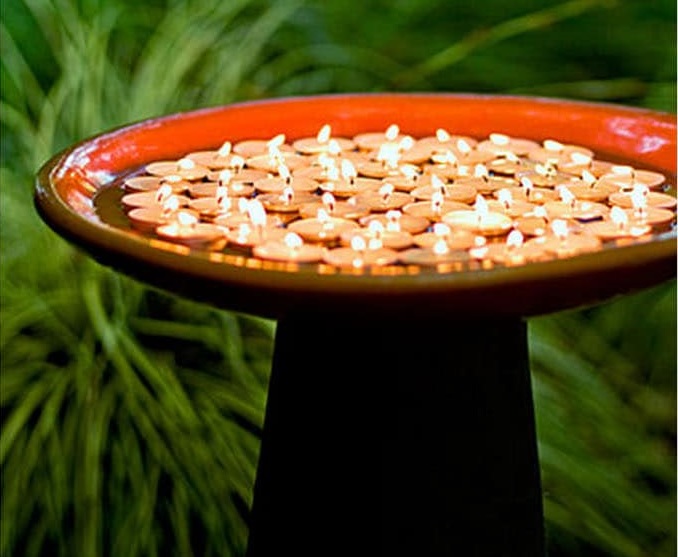 Decorative Tea Lights In Bird Bath