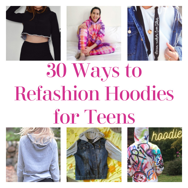 The cool weather is coming and soon it will be time for snuggly sweaters and hoodies! Naturally, teens love to put their creative stamp on anything that they can! Here are some fantastic ideas for taking a plain or worn out hooded sweat shirt and turning it into something custom and new! Give these a try!