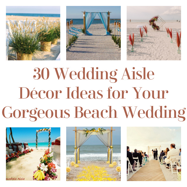 Planning a wedding on the beach?! This popular, and lovely choice comes with a built in backdrop that is to die for! But it does present some challenges in regards to setting up. First of all, sand is not wonderful for heels… or shoes of any kind really! So you’ll want to plan accordingly. When considering an aisle for the bride to walk down, there’s tons of ways you can line the walkway to be more comfortable or simply surrender to the sand beneath your toes! Either way, you can decorate with traditional flowers, ambient lighting, or local foliage and decor! Here’s some ideas to get you started!