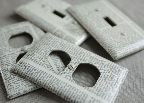 Use old newspaper clippings to add something different to your light switch cover!