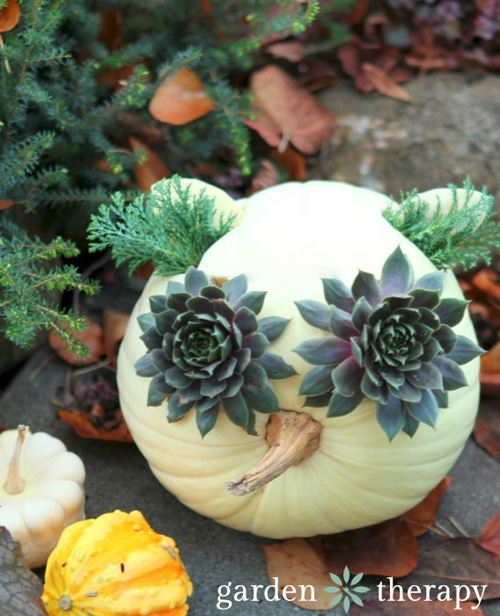 Use succulents to give your beloved jack-o-lantern a gorgeous head of hair!