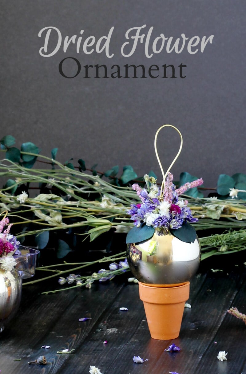 Dress up an ordinary bulb ornament with dried flowers for a wonderful final touch to decorating your tree!