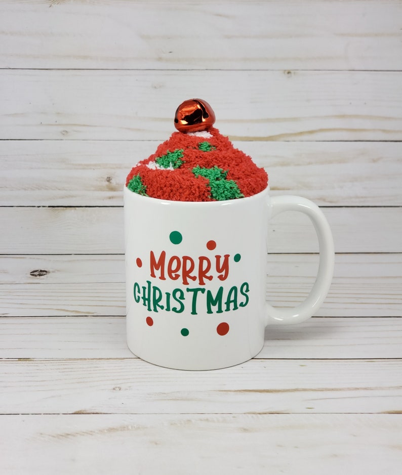 Take some inspiration from this Etsy shop and put together this easy-to-make cupcake mug with a Christmas-y mug, cozy soaks, and a jingle bell as a cherry on top!