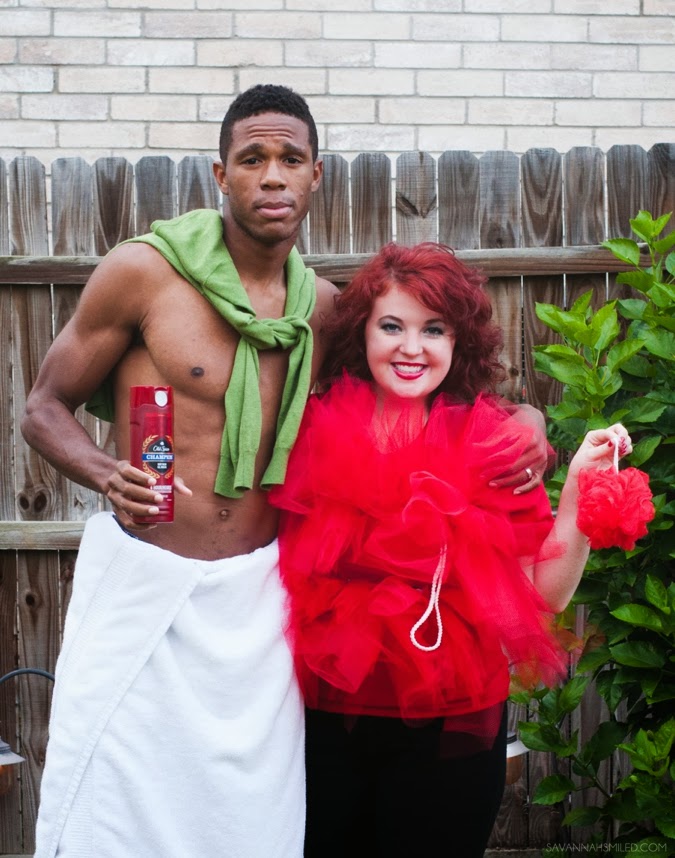 Old Spice Shower Guy and Soap scrub for couples costumes…so clean