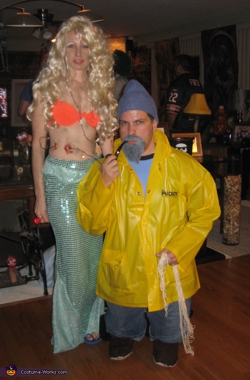 A mermaid and fisherman for a couples Halloween costume is a great idea