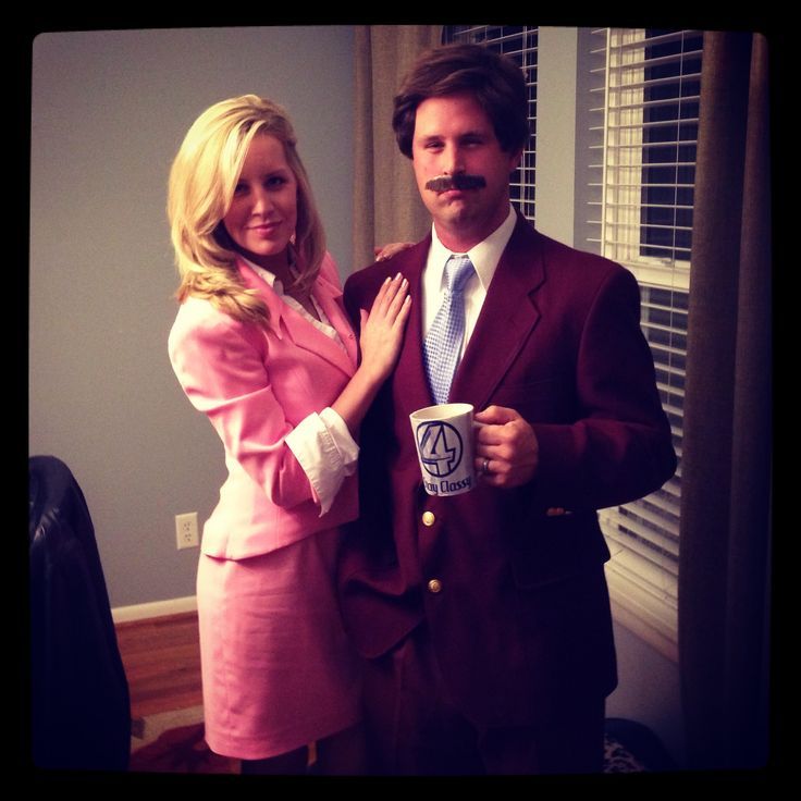 Anchorman costume with Ron Burgundy Ms. Corningstone