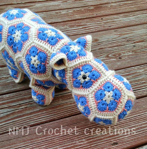 Crochet Hippo made from African flower