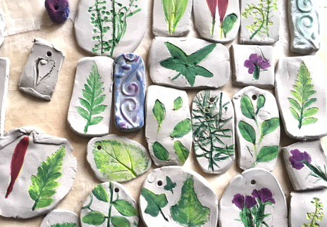 Nature Craft – Perfect for Earth Day Activity – Clay Imprints with Plants and Flowers