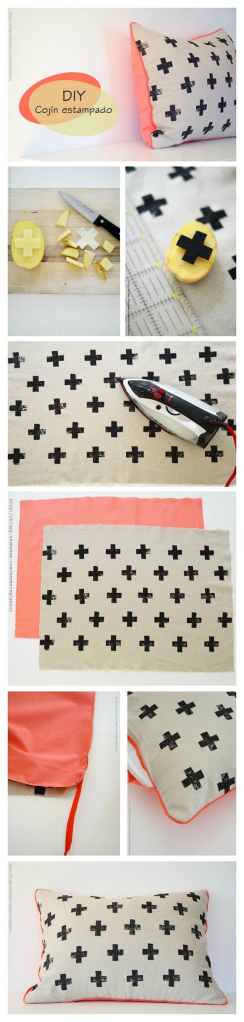 Potato stamped pillow with cross pattern