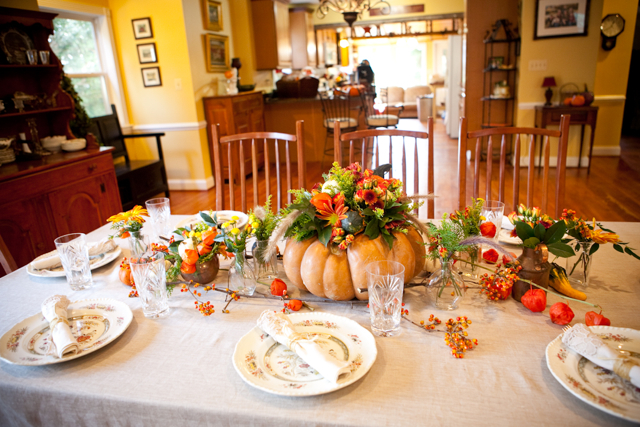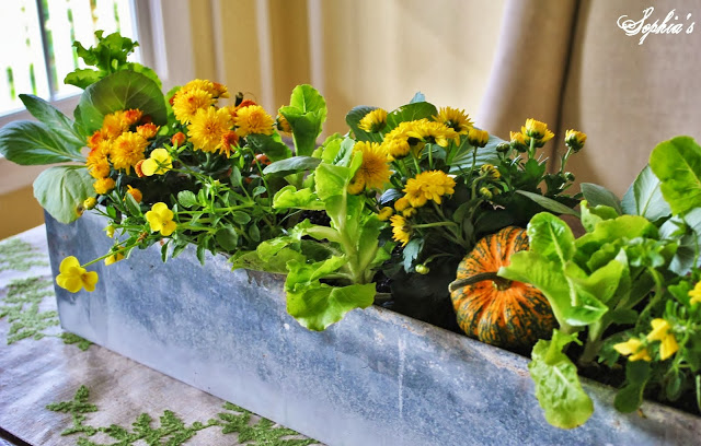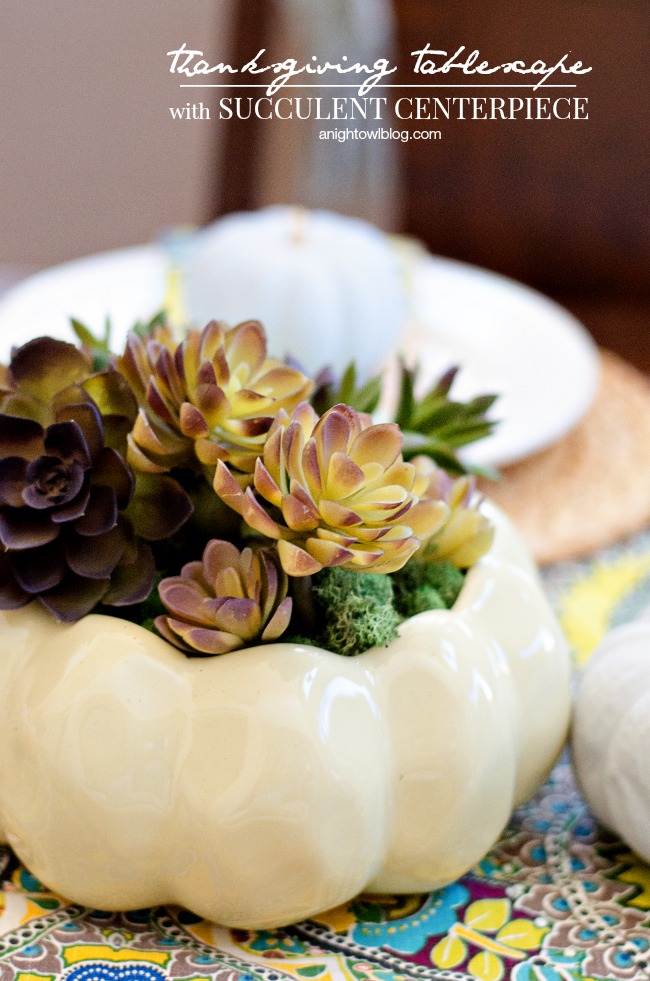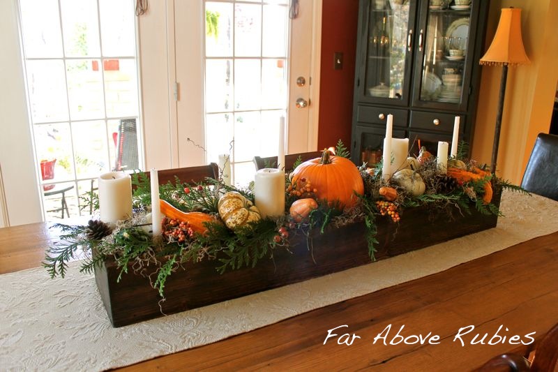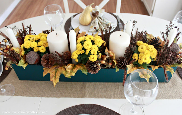 While it is less formal, this beautiful planted box table center is adorable for a casual Thanksgiving!