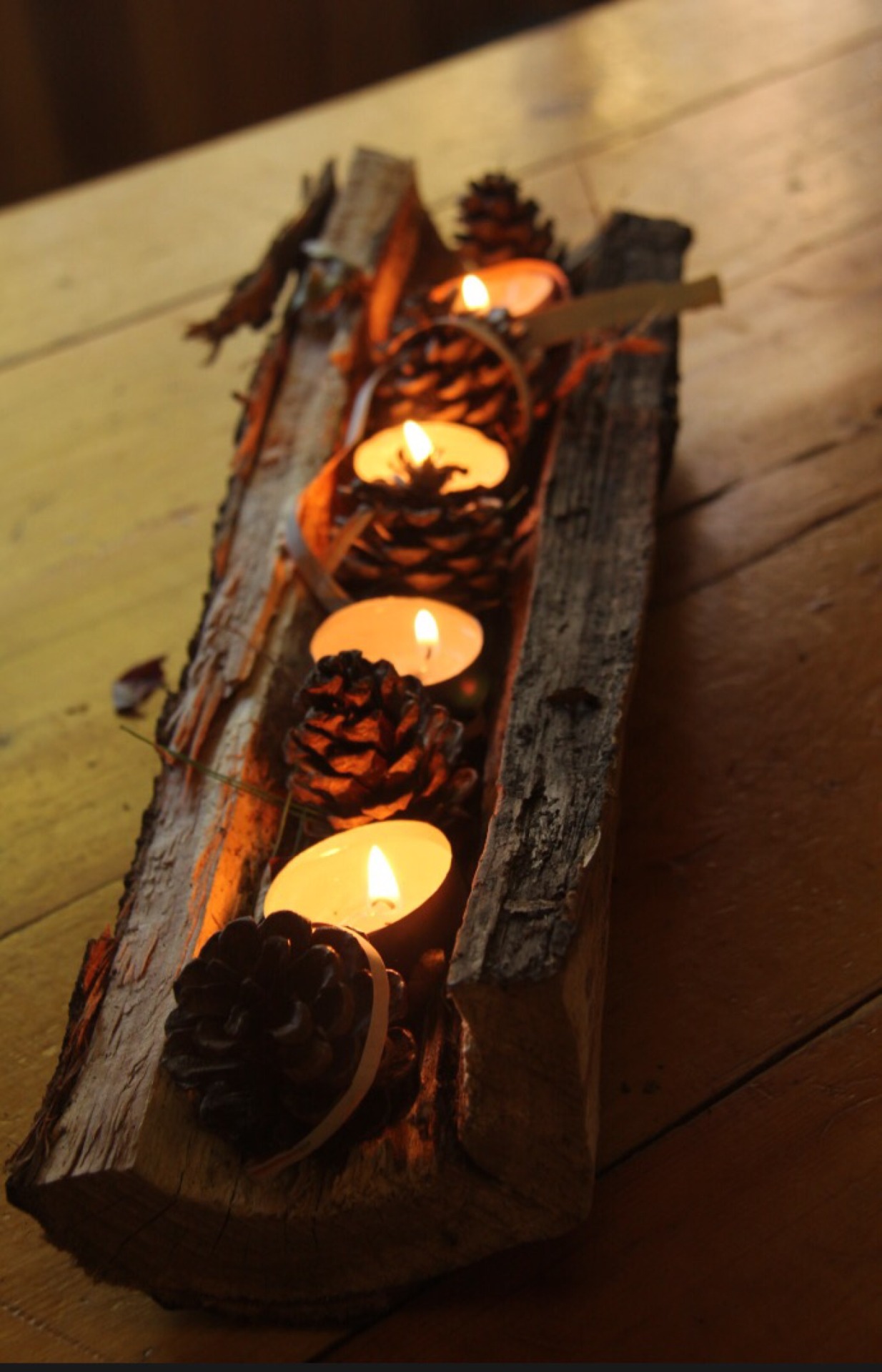Pinecone and Candle Log