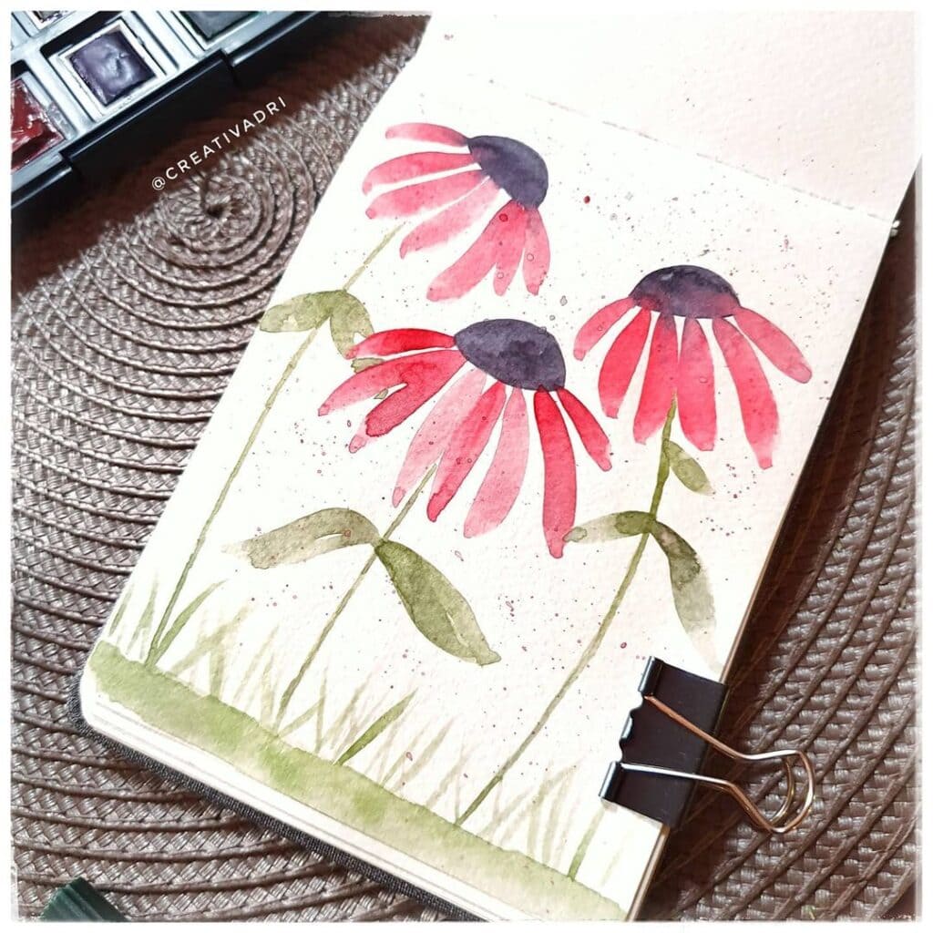 These red watercolour echinacea/coneflowers are simple to create and look pretty.