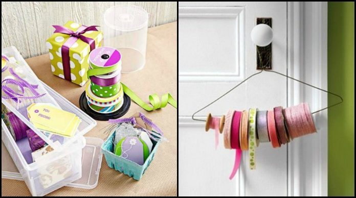 Got a lot of ribbon? Don’t let the cats play with it, organize it easily instead this way.