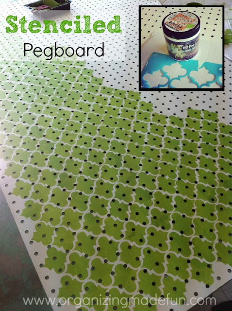 Pegboard is very popular in craft rooms. Did you know, if you stencil it that your pegboard will be so much prettier?