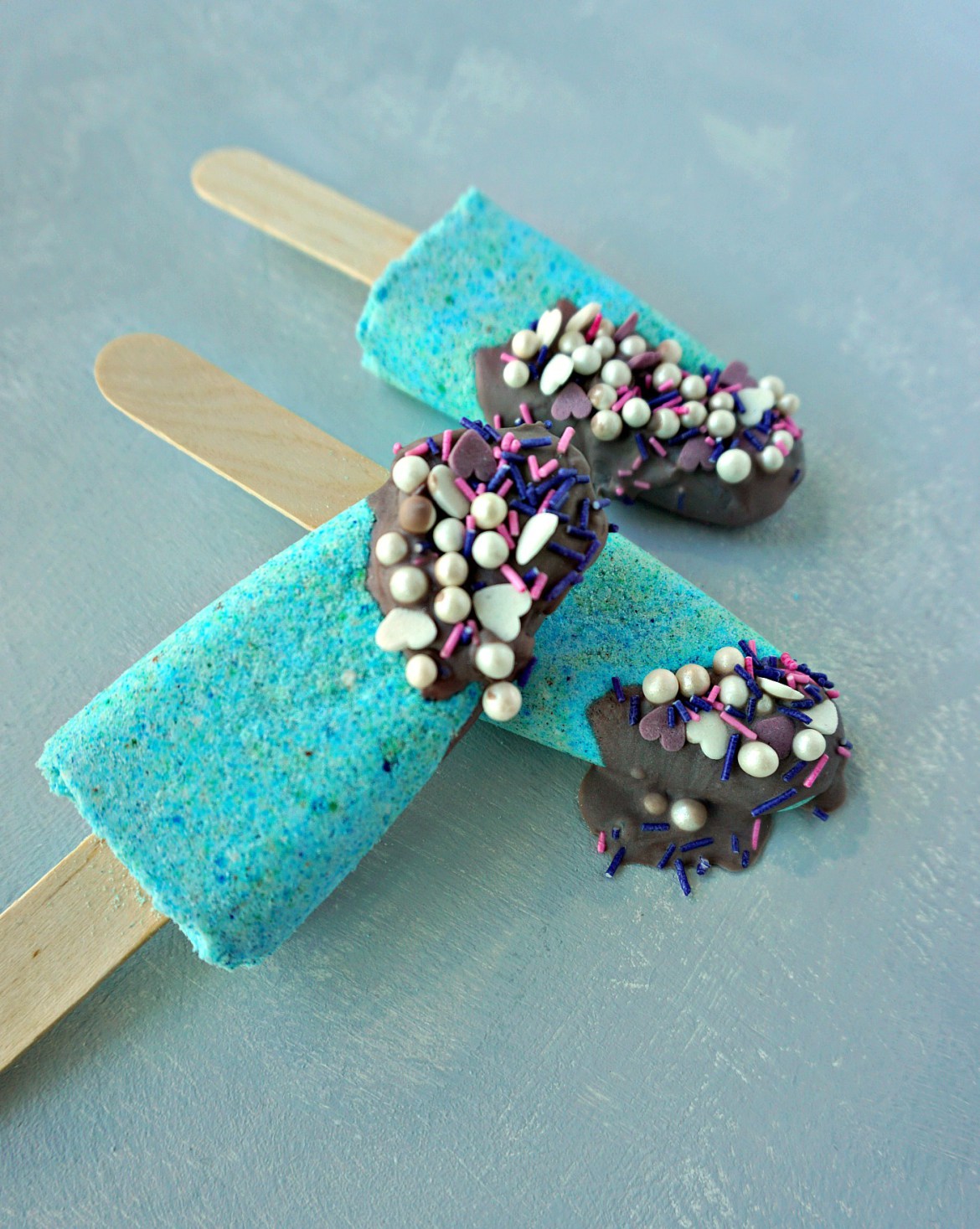 DIY Mermaid Bath Bomb Popsicles with sparkle dip