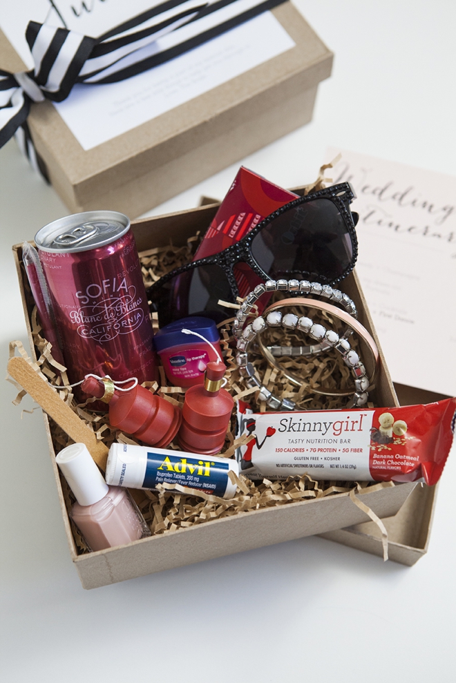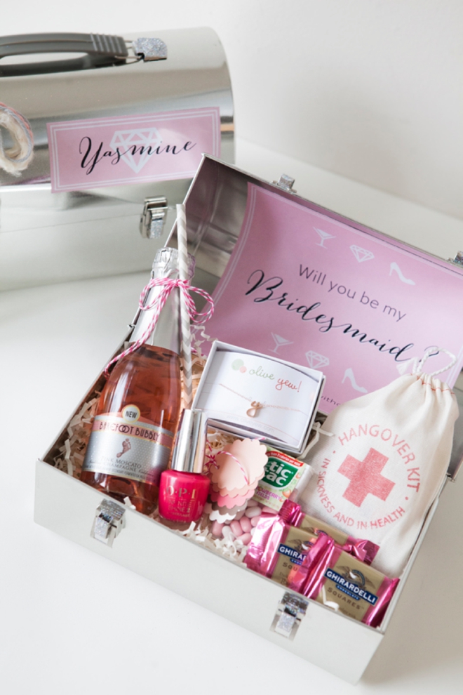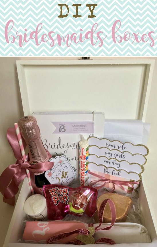 Here’s a great DIY bridesmaid box, where you make everything inside. This one looks like lots of fun!
