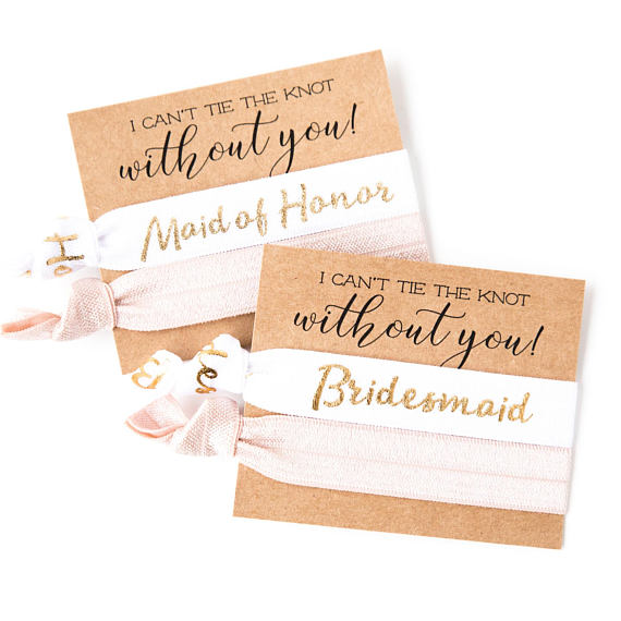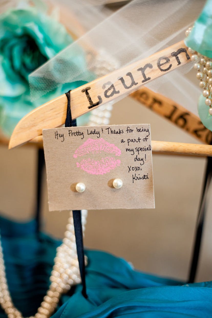 So adorable! A towel covers the wire wrap word “bridesmaid” so it is a fun surprise!