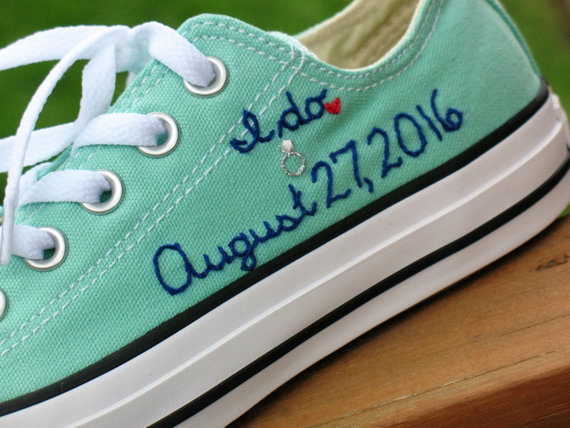 Brides today also like to customize their sneakers, wearing them at the wedding reception. Especially for a beach or BBQ style wedding reception, these are a perfect choice. You can make very pretty and feminine sneakers that will easily compliment your wedding dress, while letting your feet stay totally comfy.