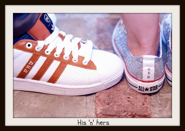 This is for for His n’ Hers sneakers for a wedding. Make personalized glitter trainers!