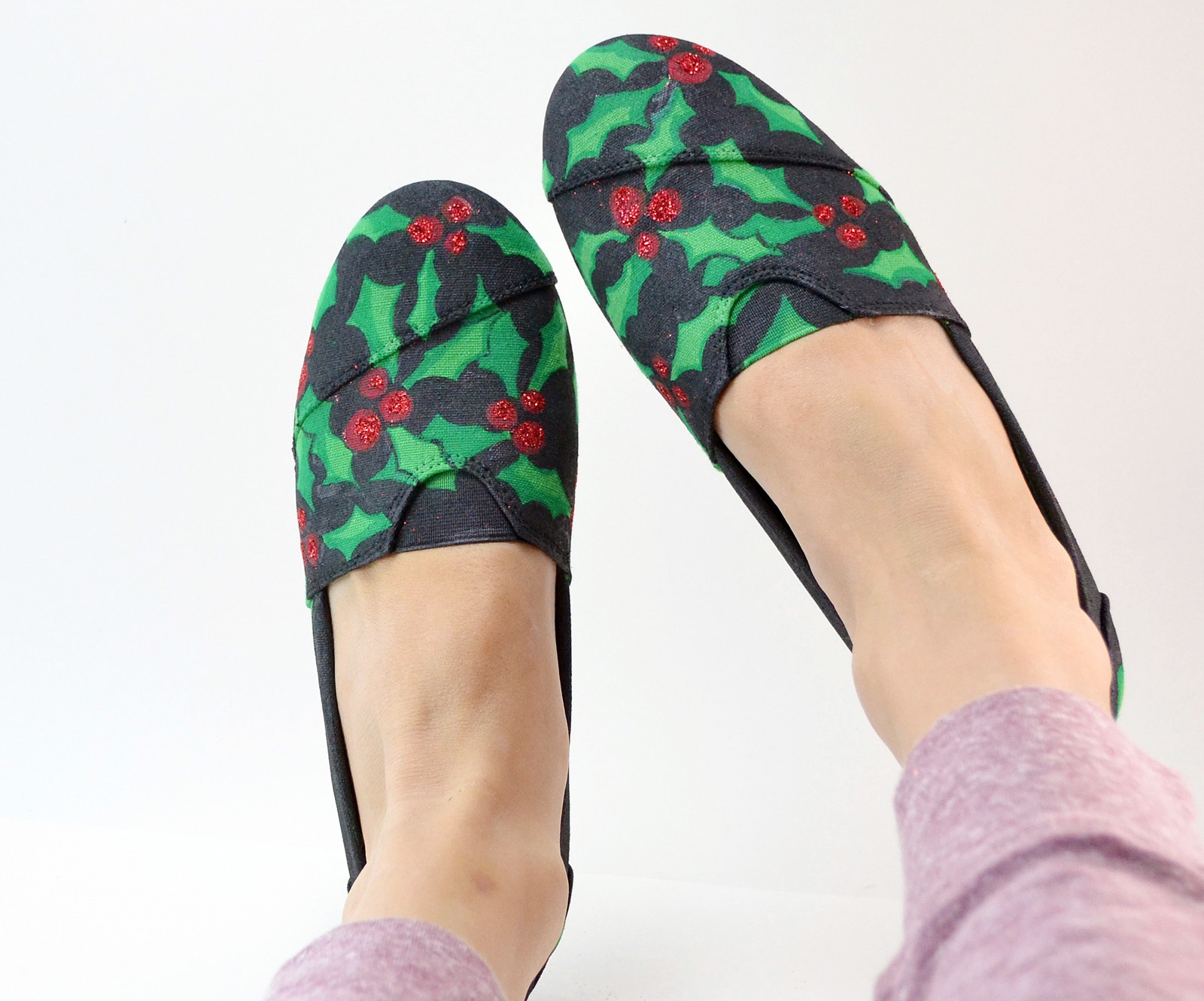 Holly Day Painted Leaf and Berries Slip On Canvas