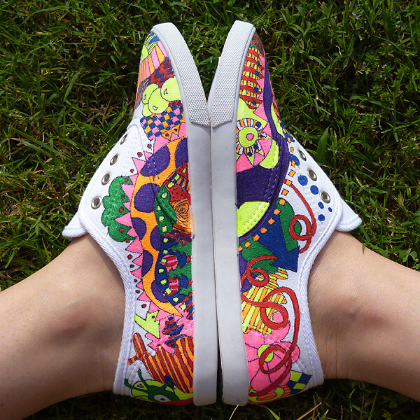 Don’t just draw on your sneaks – make them into one big doodle! Why, these are a true work of art!