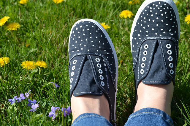 Dots are fun, modern, trendy and a bit sweet too. This is a simple way to dress up any pair of sneaks that you have.
