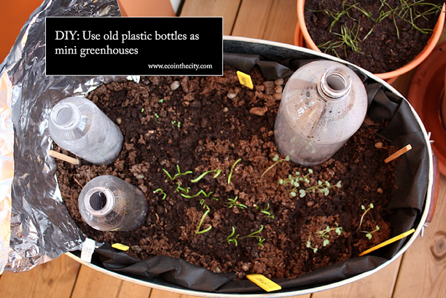 Be eco-friendly and use old bottles. Create small greenhouses.