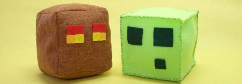 Here’s a super simple idea for Minecraft fans–felt plushy toys! This is sooooo easy, your kid could even make it! All you need is felt, stuffing, scissors, thread and a needle. Boom! There are two Minecraft mobs perfect for this style of toy: slimes and magma cubes. Why? They’re cubes already!