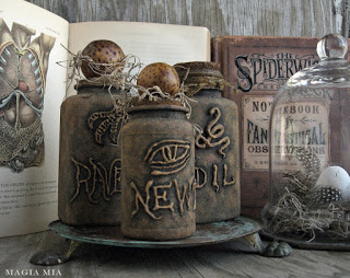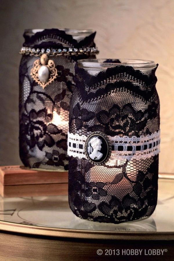 Beautiful lace on jars makes for an elegant and gothic piece of décor!