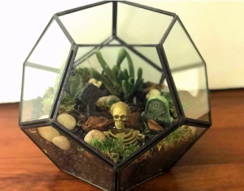 If you love plants and Halloween, why not combine the two by making this awesome graveyard terrarium?