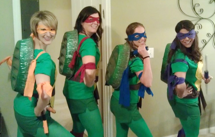 Women love the teenage mutant ninja turtles and groups of 4 women dressed like them are easy to find. They range from serious costumes to somewhat sexy costumes…for a turtle with breasts.