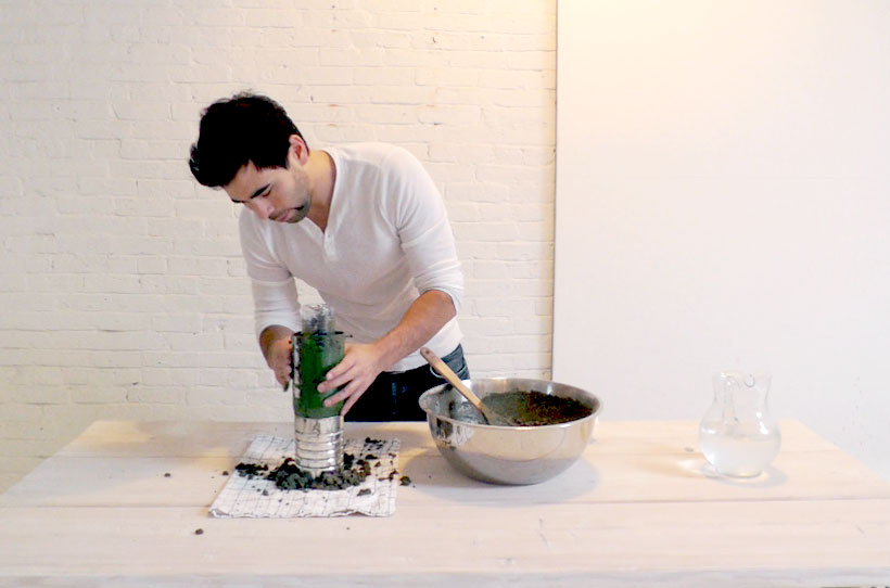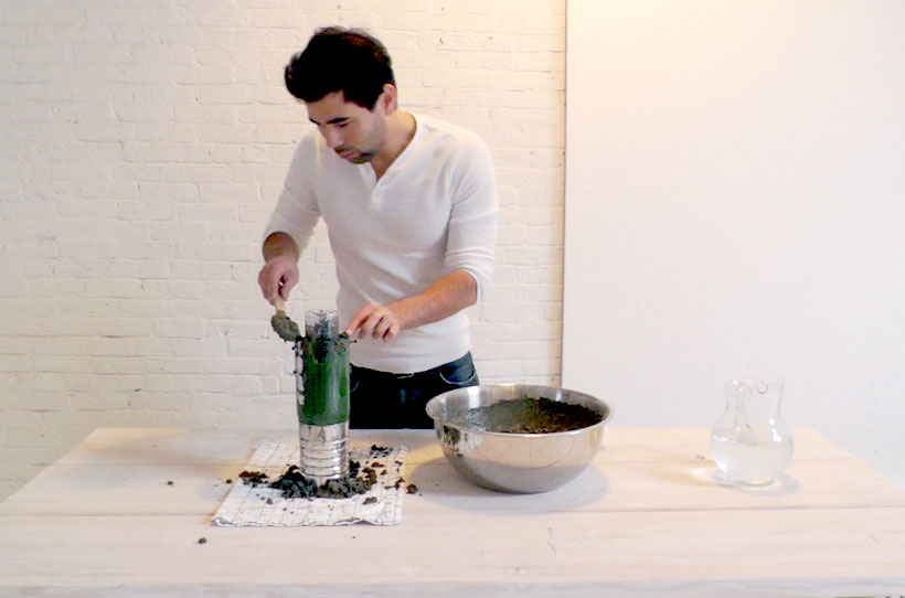 Mix the concrete and fill the molds. Make sure the concrete settles.