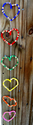 Use pieces of string to tie the hearts together in a chain. Hang from a tree, bush, hook- anywhere outside that you think your birds might like to eat. It may take a little while for the birds to find them, but they will be happy chirpers when they do!