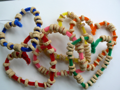 Do you have pipe cleaners, Cheerios, and string in your house right now? If so, you and your kids can easily make a fun Valentine’s Day bird-feeder. (I don’t suppose the birds in your backyard are really expecting much this February 14th, but I’ll bet your kids will enjoy making it for them anyway!)